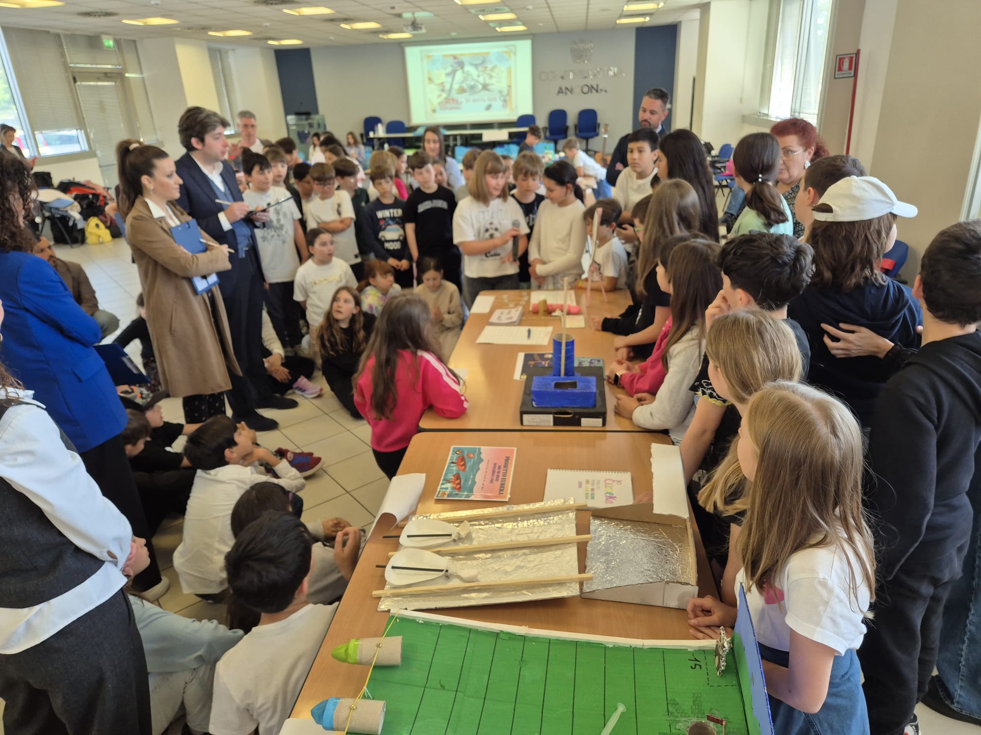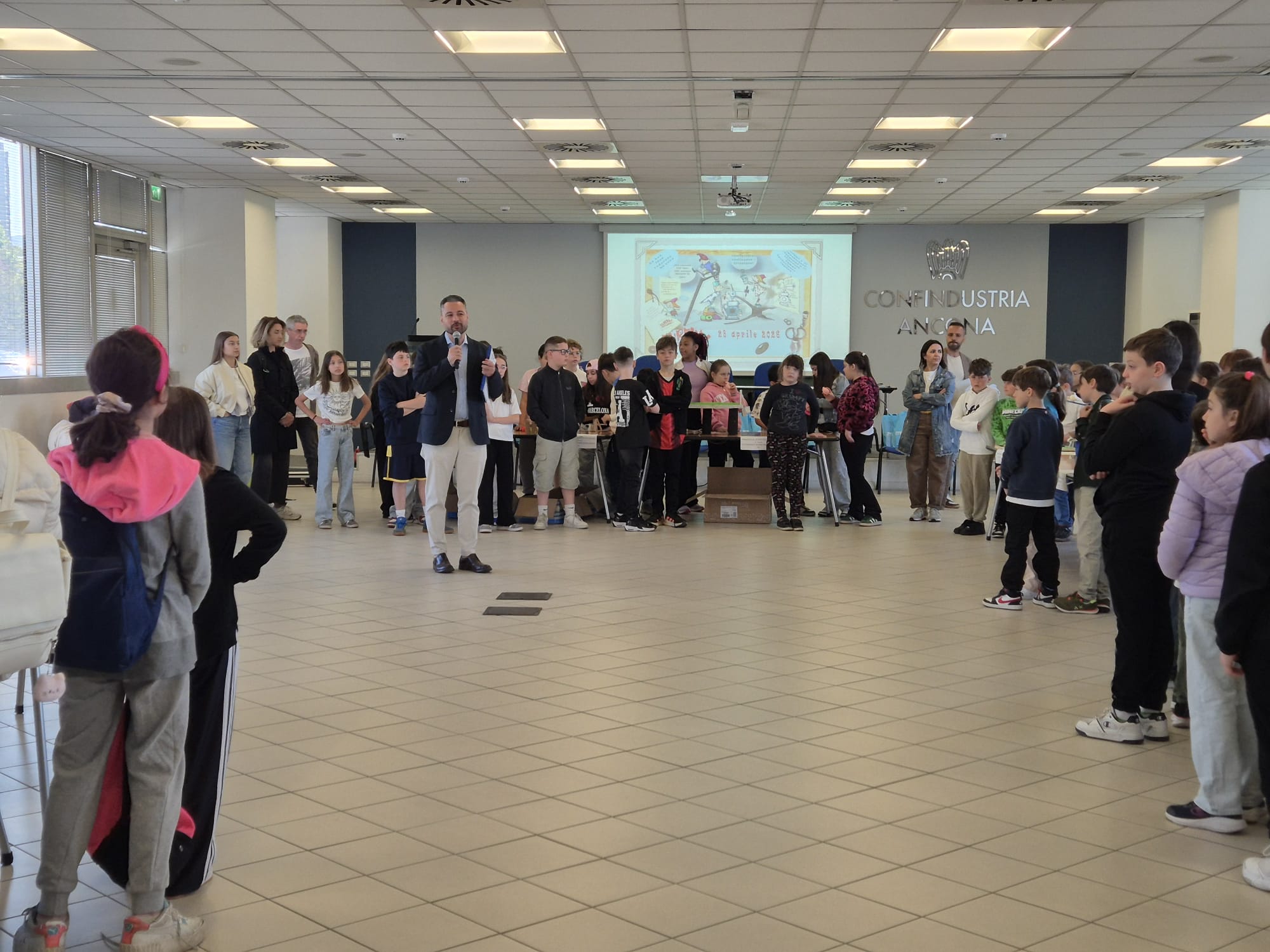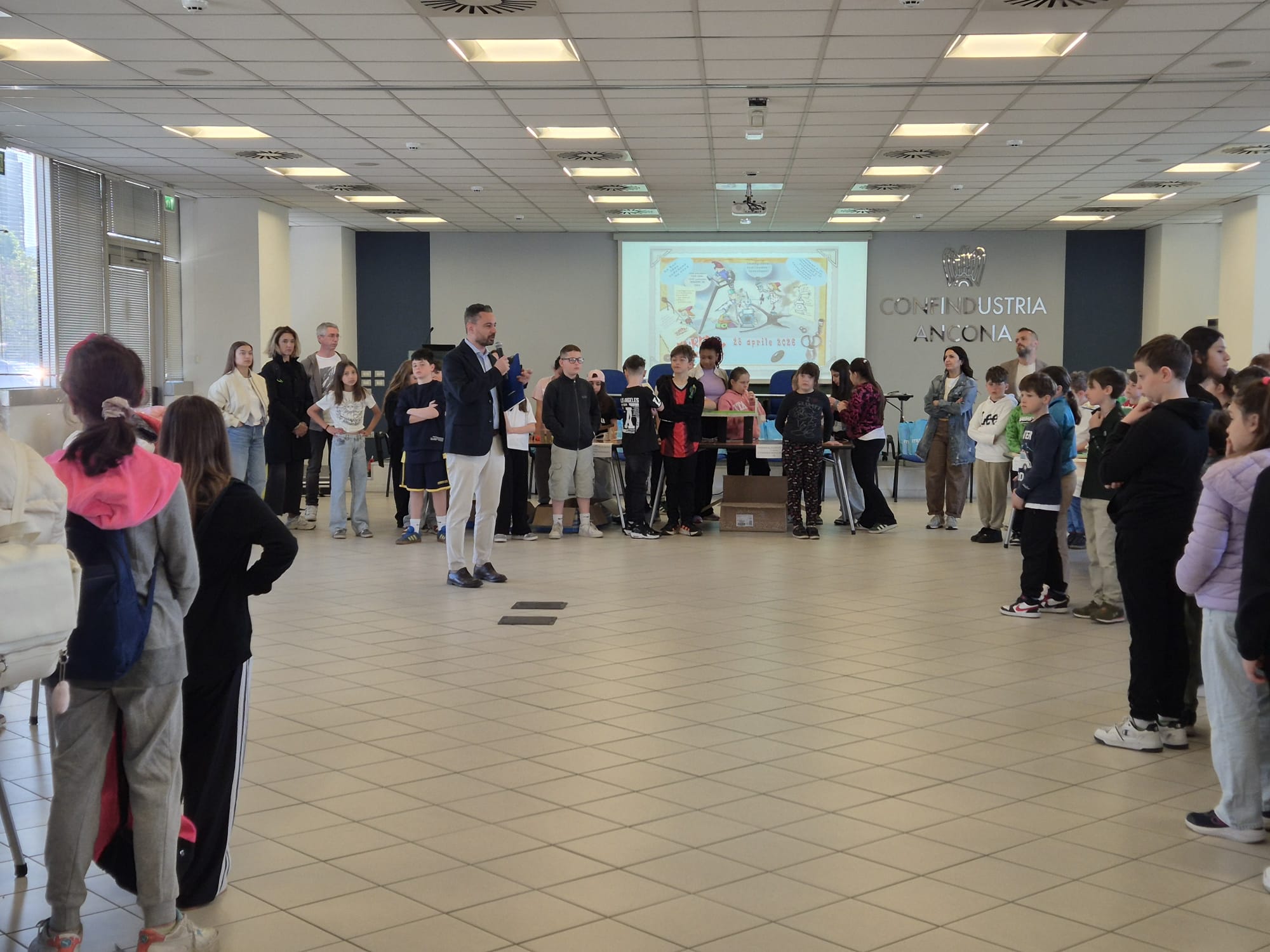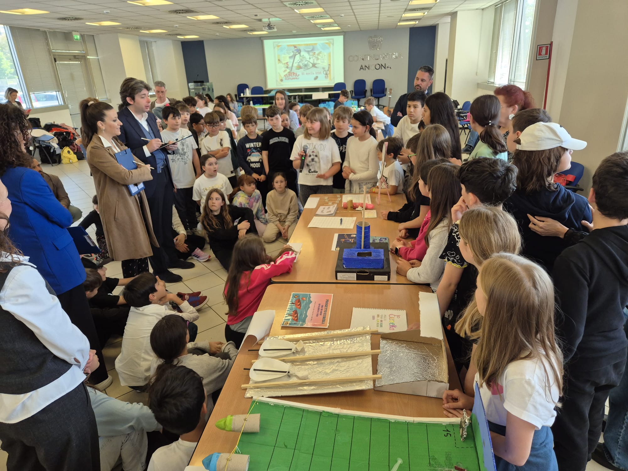 Ancona, 28 aprile 2026 – Oltre 120 alunni delle scuole primarie del territorio si sono sfidati questa mattina nella sede di Confindustria Ancona per la finale della 14ª edizione di “Eureka! Funziona!”, concorso nazionale di educazione tecnico-scientifica promosso da Federmeccanica con il patrocinio del MIM e coordinato dai Giovani Imprenditori dell’Associazione dorica.