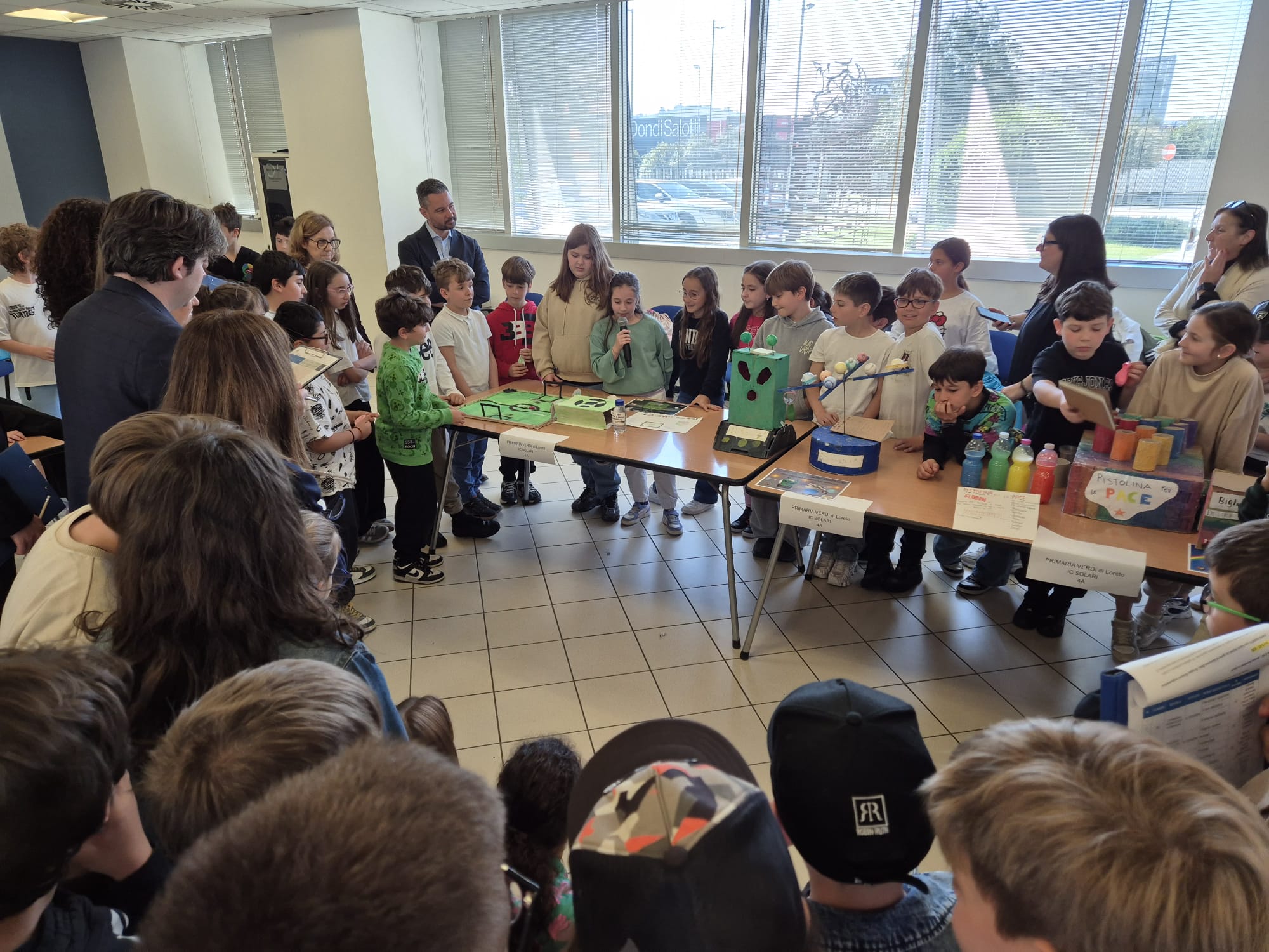 Sul podio, tutte classi quinte: al termine delle presentazioni la vittoria è andata a “Il vulcano molto attivo” della scuola primaria Verdi di Loreto, secondo posto per “Flyball” della primaria Allegretto Di Nuzio di Fabriano e terzo per “FlyRocket” della primaria Pergolesi di Monsano. Un premio speciale della giuria è stato inoltre assegnato a “L’alieno spaziale”, realizzato da una classe quarta della scuola Verdi di Loreto.