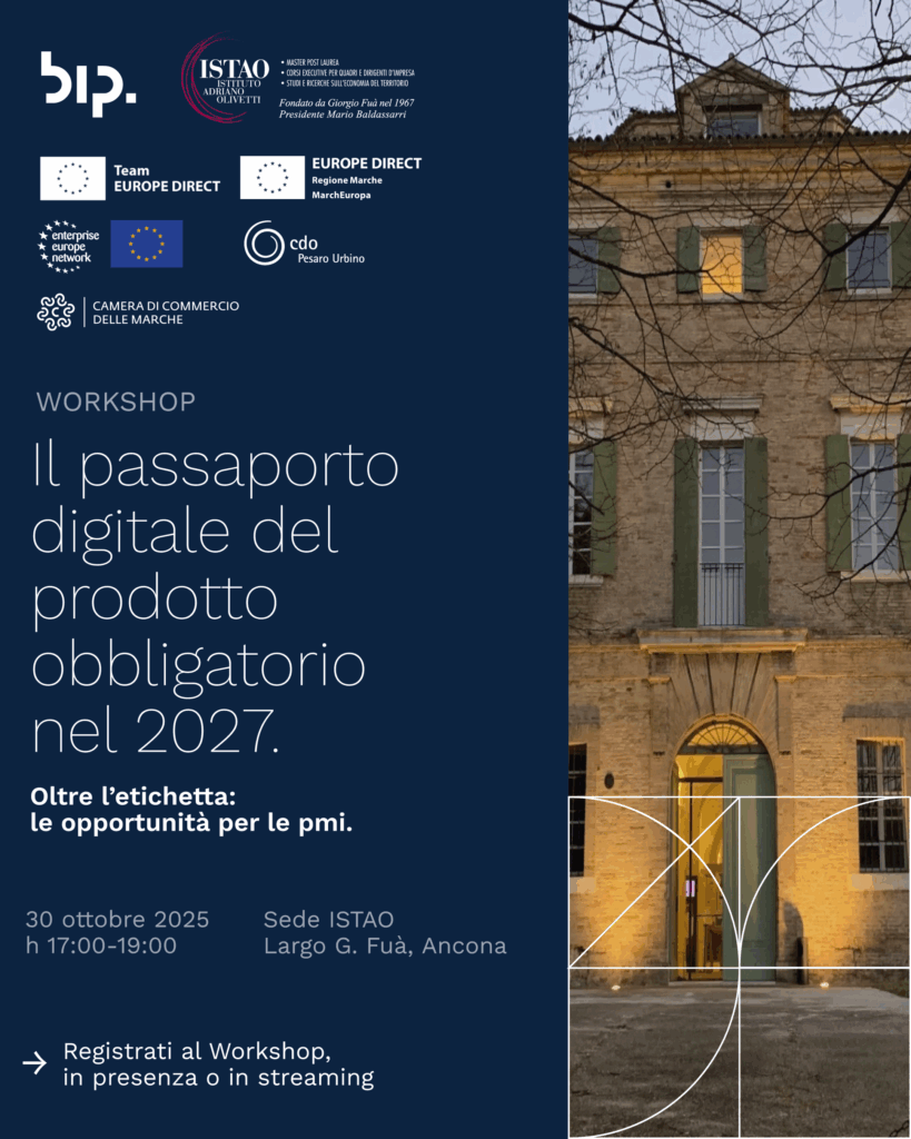 Dal 2027 il Digital Product Passport diventerà obbligatorio per numerose imprese, dal Tessile all’Arredamento. Camera di Commercio delle Marche promuove con partner qualificati un evento per analizzare il quadro normativo europeo sulla tracciabilità, i requisiti tecnici e le tecnologie impiegabili, con focus sulle implicazioni operative per le PMI.